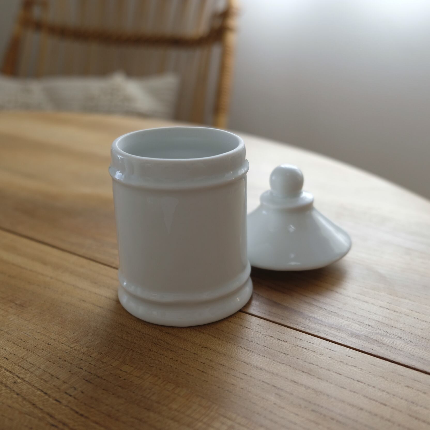 antique pharmacy pot / canister / white